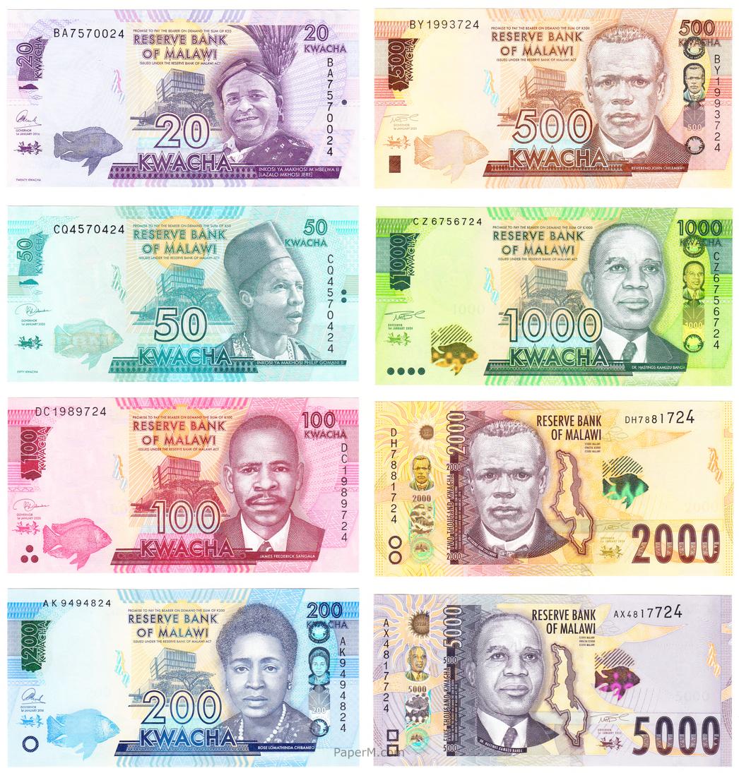 20 to 5000 Kwacha - Complete demoniational set. 8 pieces
