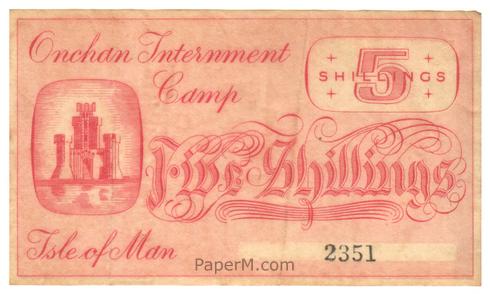 | 5 Shillings - Onchan Internment Camp. Campbell 5372, Feller-Feller IM-1426 | |||||