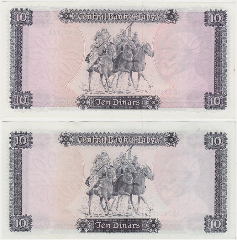 10 Dinars - Set of two notes, with and without inscription; Catalog value of $800