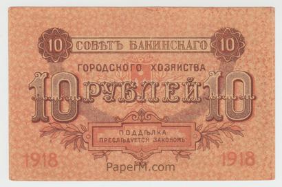 | 10 Rubles, Soviet Baku City Adminstration | |||||